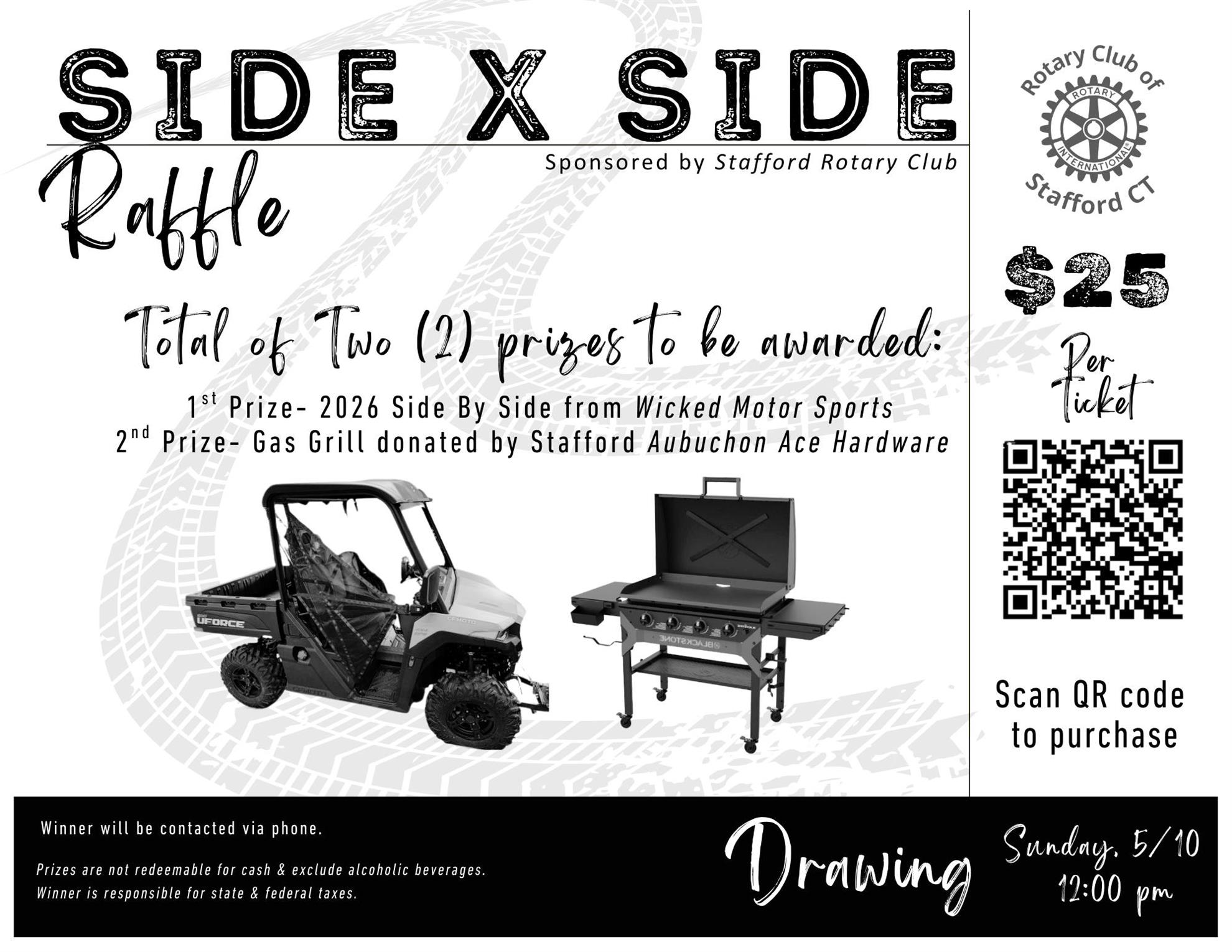 The Rotary Club of Stafford is currently hosting two fundraising initiatives to support the local community: a Side-By-Side Raffle featuring prizes donated by Wicked Powersports and Aubuchon Ace Hardware of Stafford, and the Stafford School Lunch Debt Relief Fund to help families struggling with student meal balances. Both efforts aim to bring the community together to support local families and ensure students have the resources they need to succeed.